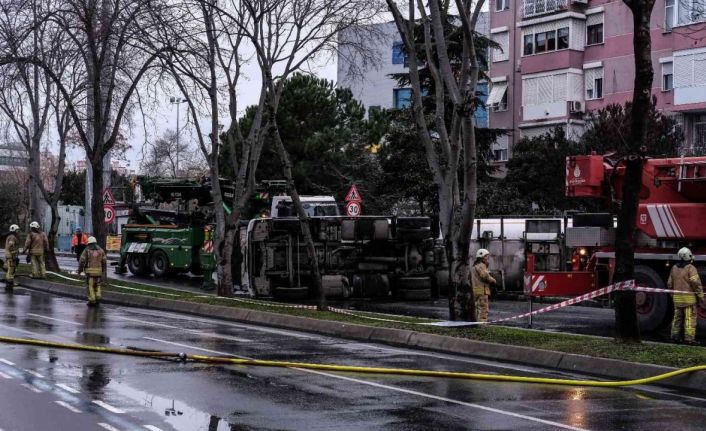 Bakırköy’de sürücünün kontrolünü kaybettiği LPG yüklü tanker yola devrildi. LPG yüklü tanker 6 saat süren çalışmanın ardından yoldan kaldırıldı.