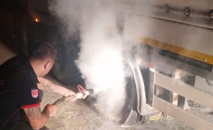 Çorum’un Sungurlu ilçesinde, seyir halinde iken balataları aşırı ısınan kamyonun lastikleri alev aldı.
