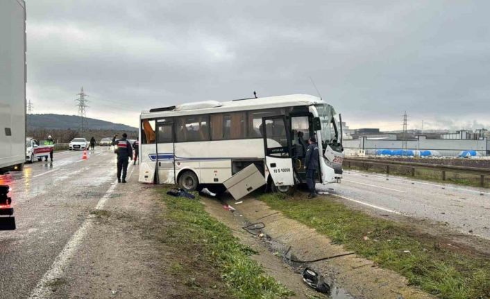 Balıkesir’de rüzgar enerjisi parçaları üreten bir fabrikanın işçilerini taşıyan servis kaza yaptı. Minibüste bulunan 18 işçiden 4’ü yaralanırken, facia ucuz atlatıldı.