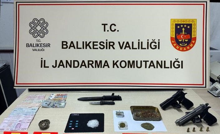 Balıkesir İl Jandarma Komutanlığınca, uyuşturucu madde imal ve ticaretine yönelik yapılan istihbari çalışmalar neticesinde Marmara ve Altıeylül ilçelerinde uyuşturucu madde ticareti yaptığı tespit edilen 17 şüphelinin üzerinde, araçlarında ve ikamet adreslerinde arama yapıldı. Aramalarda; 80 gram metamfetamin, 17 gram kubar esrar, 7 adet sentetik uyuşturucu hap, 2 adet tabanca, 4 adet tabanca fişeği, 1 adet esrar öğütme aparatı, 2 adet bıçak, 2 adet uyuşturucu kullanma aparatı; 3 bin 850 TL, 80 euro, 150 dolar suçtan elde edilen gelir ele geçirildi. Olaya karışan 17 şüpheli yakalanarak haklarında adli işlem başlatıldı.