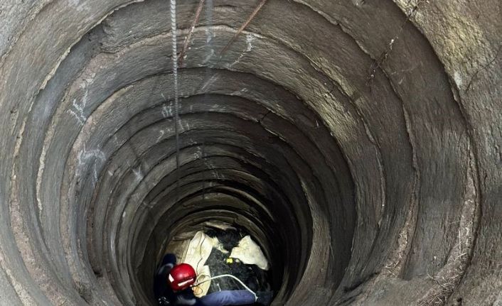 Balıkesir’in Gömeç ilçesinde bir büyükbaş hayvan, düştüğü kuyudan itfaiye ekipleri tarafından vinçle kurtarıldı.