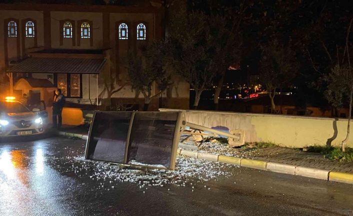 Balıkesir’de gündüz saatlerinde orta şiddette esen lodos, gece etkisini arttırdı. Sert esen lodosa ağaçlar dayanamadı. Bazı evlerin çatıları uçarken, bir otobüs durağı ise yıkıldı. Maddi zararla atlatılan lodos fırtınasında camiden anonslar yapılarak vatandaşların evde kalması istendi.