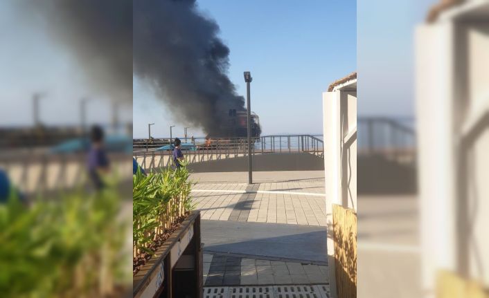 Balıkesir’in Edremit ilçesine Altınoluk tatil mevkisinde bir tur teknesi alev alarak yandı. Sabah yürüyüşe çıkan tatilciler, yanan tur teknesini izledi.