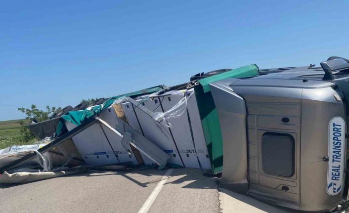 Balıkesir’in Bandırma ilçesinde Çanakkale karayolu üzerinde seyir halindeki tır devrildi, 1 kişi yaralandı.