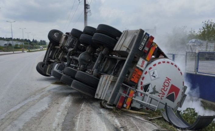 Balıkesir’in Bandırma ilçesinde kimyevi madde yüklü tankerin devrildiği kazada 1 kişi yaralandı.