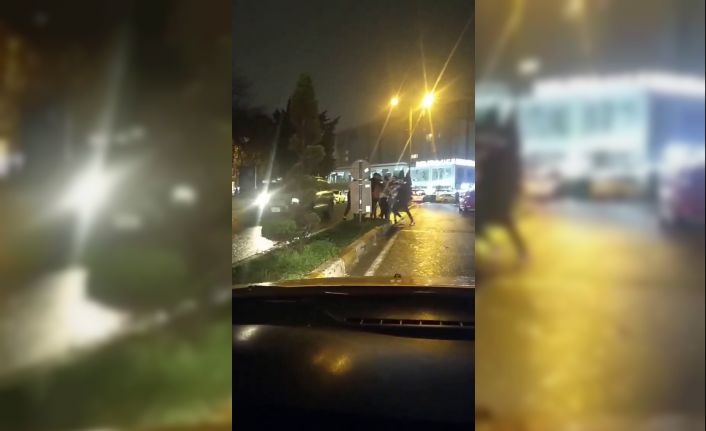 Beylikdüzü’nde bir barın çıkışında tartışan gençler, tekme tokat birbirlerine saldırdı. Şahıslardan birinin elindeki bıçağı rastgele salladığı kavga, cep telefonu kamerasına yansıdı.