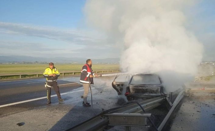 TEM Otoyolu Bolu geçişinde kontrolden çıkan otomobil bariyerlere çarparak alev aldı. Meydana gelen kazada otomobildeki 3 kişi yaralandı.