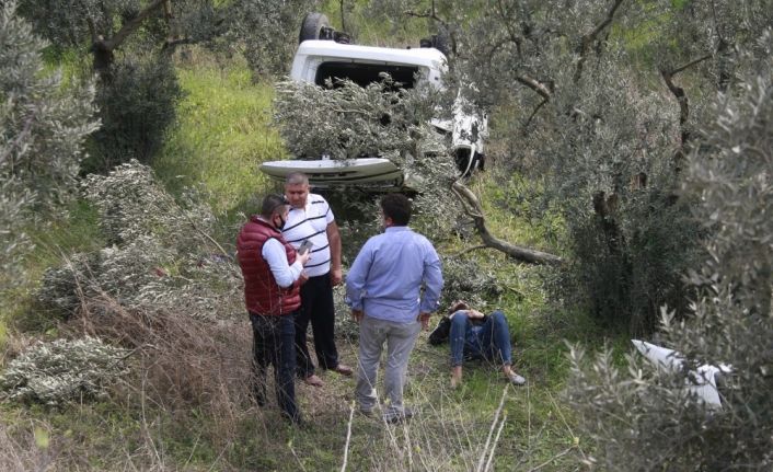 Bursa’nın Orhangazi ilçesinde kontrolden çıkan hafif ticari araç önce bariyerlere çarptı, ardından da zeytinliğe uçtu. Takla atan aracın genç sürücüsü yaralandı.
