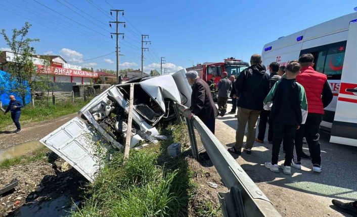 DÜZCE (İHA) – Düzce’de otomobil bariyerlere saplanarak parçalandı. Kazada otomobil devrilmesin diye tahtalar ile araba sabitlenirken, sıkışan sürücü itfaiye ekiplerince kurtarıldı.