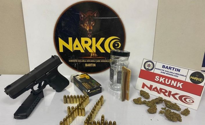 Edinilen bilgiye göre, İl Emniyet Müdürlüğü Narkotik Suçlarla Mücadele Şube Müdürlüğü ekipleri 34 plakalı bir aracı şüphelenerek durdurdu. Araçta bulunan O.A., H.D. ve S.A. isimli şahısların üzerinde ve araçta yapılan aramada 9,78 gram skunk maddesi, 1 adet suikast silahı olarak bilinen Glock marka tabanca ve tabancaya ait 1 adet şarjör, 59 adet fişek, uyuşturucu madde kullanmaya yarayan aparatlar ele geçirildi. Yakalanan 3 şüpheli hakkında Bartın Cumhuriyet Savcısının talimatı ile "uyuşturucu madde bulundurmak ve kullanmak" suçundan adli işlem başlatıldı.
