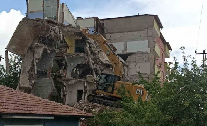 6 Şubat depremlerinde Sivas’ın Gürün ilçesinde ağır hasar alan binanın yıkımı esansında baş kısmına moloz parçası fırlayan operatör ağır yaralandı.