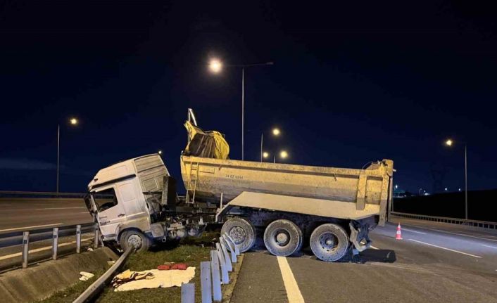 İstanbul Kuzey Marmara Otoyolu Başakşehir mevkiinde seyir halindeki hafriyat kamyonu önce serbest geçiş sistemi direğine çarpıp ardından bariyere girdi. Kazada sürücü ağır yaralandı.