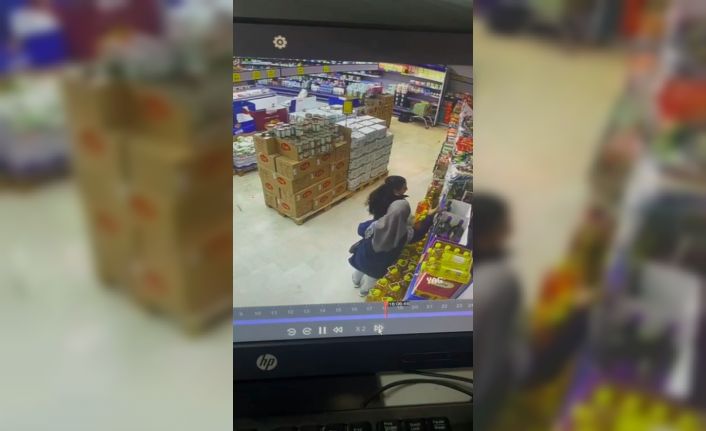 Başakşehir Onur Kent’te bulunan bir zincir markete giren iki hırsız zeytinyağı rafındaki yağları çaldı. Hırsızlık anı güvenlik kamerası tarafından saniye saniye görüntülendi. Görüntülerde 2 kadının beraberindeki poşetlere zeytinyağlarını koyarak çaldığı görüldü.