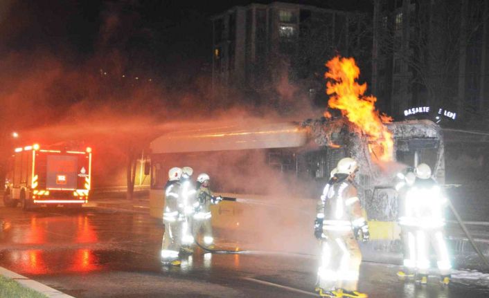 Başakşehir’de özel halk otobüsü alev topuna döndü