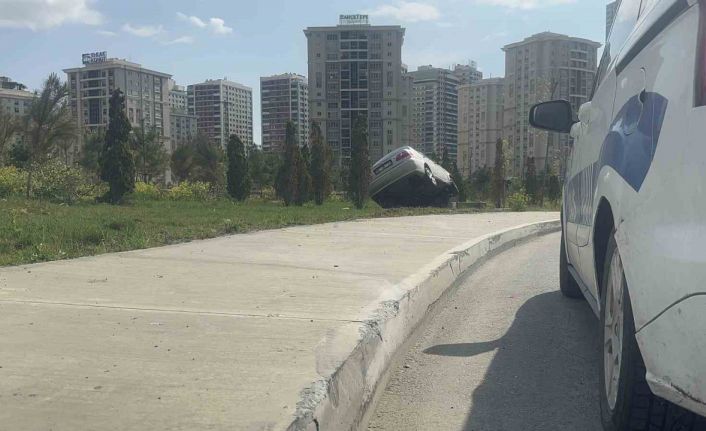 Başakşehir’de virajı alamayan sürücü çayırlık alana çıktı