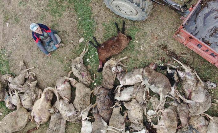 41 hayvanının köpekler tarafından telef edildiğini belirten Mustafa Sevim, "Bu sabah saat 10.00 gibi çiftliğe geldiğimde koyunların birçoğunun yerde yattığını ve yaralı olduklarını fark ettim. Tel örgü ile çevrili ağıldan köpeklerin beni görünce kaçtıklarını fark ettim. Hayvanlara müdahale etmeden gerekli yerleri arayıp haber verdim. Hayvanların hepsinde diş izleri vardı. Birçoğu boğulmuş ve parçalanmıştı. Bunları vatandaşlar bırakmıyor. Birçoğu kulakları küpeli ve kısırlaştırılmış köpeklerdi. Ölen koyunların yüzde 90’ı gebeydi. 3-4 ay sonra hepsi doğuracak ve sürünün devamını sağlayacaklardı. Parayla değer biçilecek bir durum değil ama 140 bin TL’ye yakın zararımız var" dedi.