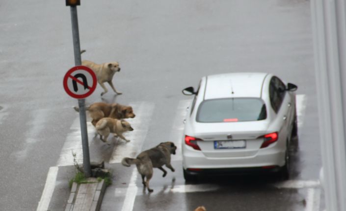 Samsun’da başıboş köpekler yoldan geçen araçlara saldırarak sürücüleri tedirgin etti.