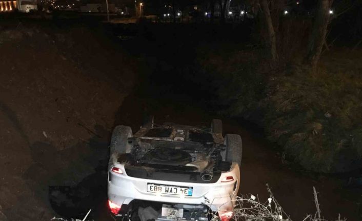Kocaeli’de tali yoldan ana yola çıkan otomobil sürücüsü yoldan geçen araca çarpmamak için manevra yapınca hakimiyeti kaybederek dereye uçtu. Takla atarak ters vaziyette derenin içinde durabilen otomobilin sürücüsü yaralandı.