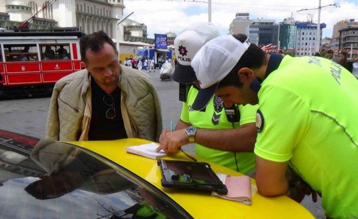 İstanbul Emniyetine bağlı trafik ekipleri Taksim Meydanı’nda denetim gerçekleştirdi. Denetimler esnasında belediye ruhsatı kapalı olduğu halde trafiğe çıktığı belirlenen taksi sürücüsüne, 4 bin 64 TL idari para cezası uygulandı.