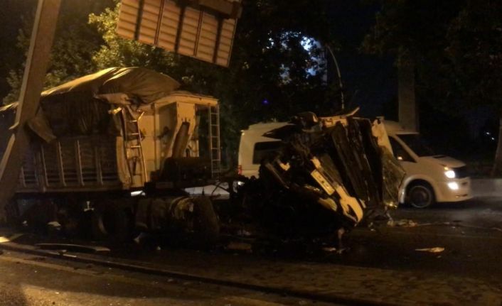 Ankara’nın Çankaya ilçesinde hakimiyetini kaybeden bir kamyon sürücü yol ayrımındaki direğe çarptı. Kazada kamyon şoförü yaralandı.