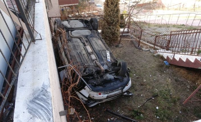 Başkent’te gizli buzlanma nedeniyle kayan otomobil apartmanın bahçesine uçtu. Aracın ters döndüğü kazada hafif yaralanan anne ve oğlu hastaneye kaldırıldı.