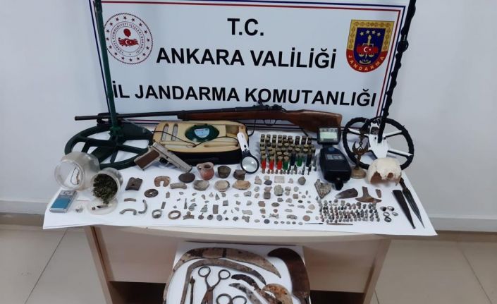 Ankara’da jandarma ekiplerince tarihi eser kaçakçılığına yönelik bir eve yapılan operasyonda, çok sayıda, dedektör, tarihi eser, ruhsatsız silah, mermi, fişek ve uyuşturucu ele geçirildi.