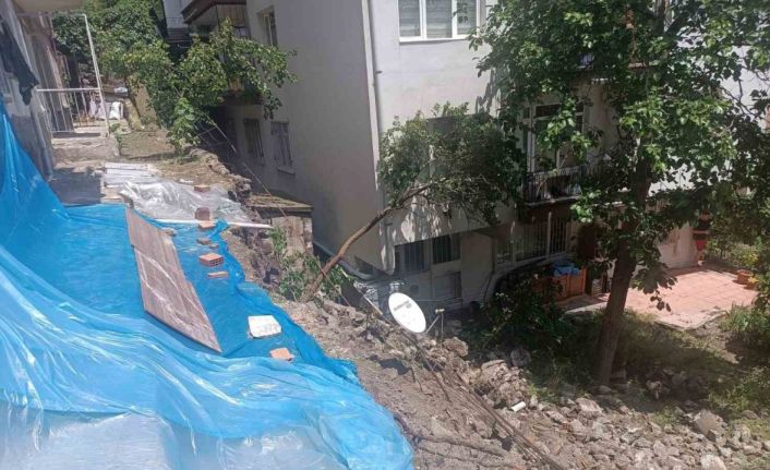 Yan binanın sakini Mert Dindar ise, “Aşırı yağıştan dolayı yan binanın istinat duvarı çöktü. Daha önce de çökmüştü. Dün evde otururken annem ‘Koş oğlum. Yan binanın duvarı çöküyor’ dedi. Çıktığımızda önce birkaç taş düştü. Ardından bütün duvar çöktü” ifadelerini kullandı.