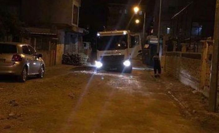 Batman’da yol çalışması nedeniyle açılan çukura belediyeye ait çöp kamyonu düştü.