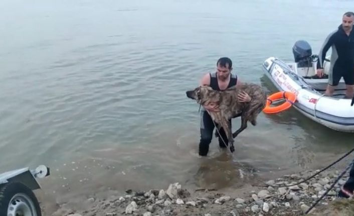 Batman Çayında mahsur kalan köpek kurtarıldı