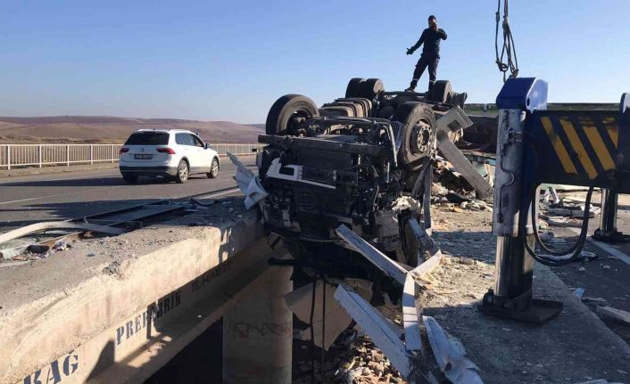 Batman-Diyarbakır karayolunda sürücüsünün direksiyon hakimiyetini kaybettiği tır, kontrolden çıkarak köprüde asılı kaldı. Kazada 1’i ağır 2 kişi yaralandı.