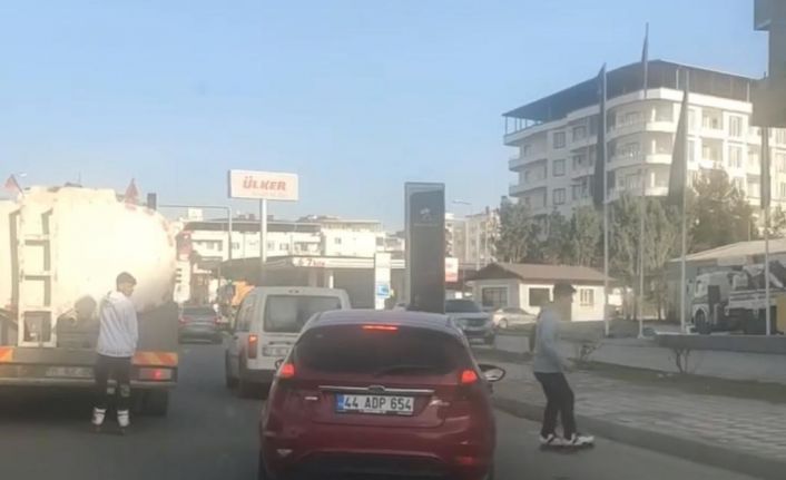 Batman’da paten yapan iki gencin trafikteki tehlikeli hareketleri cep telefonu kameralarına yansıdı. O anları görenlerin yüreği ağzına gelirken gençler tehlikeli oyunlarının farkında bile değildi.