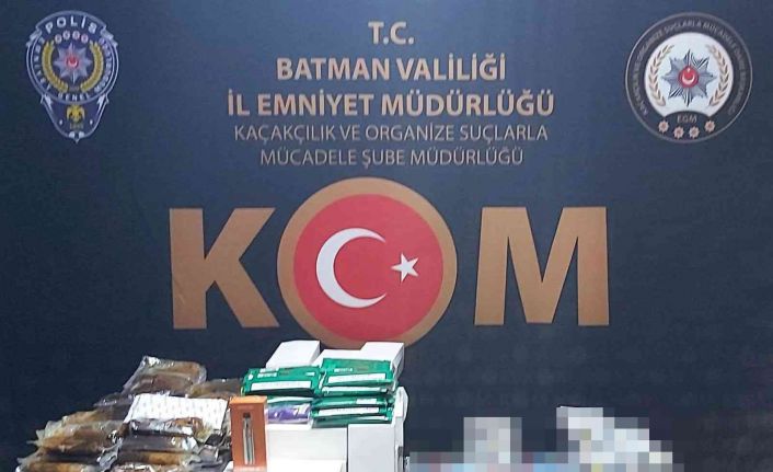 Batman Emniyet Müdürlüğü Kaçakçılık ve Organize Suçlarla Mücadele (KOM) Şube Müdürlüğüne bağlı ekipler, Bahçelievler Mahallesinde 2 iş yerinde arama yaptı. Yapılan aramalarda 312 paket gümrük kaçağı sigara, 1,5 kilo puro tütünü, 41 kilo nargile tütünü, 4 litre elektronik sigara likiti, 11 bin adet boş makaron, 40 adet puro, 10 adet elektronik sigara kiti ele geçirildi. Konu ile ilgili iki şüpheli hakkında adli işlem başlatıldı.