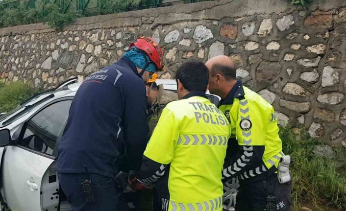 Bursa’da Timsah Arena stadı çevresinde seyir halindeyken direksiyon hakimiyetini kaybeden bayan öğretmen, aracıyla dereye uçtu. Emniyet kemeri ve hava yastığı sayesinde ölümden kurtulan öğretmen 112, itfaiye ve polis ekiplerince kurtarıldı.