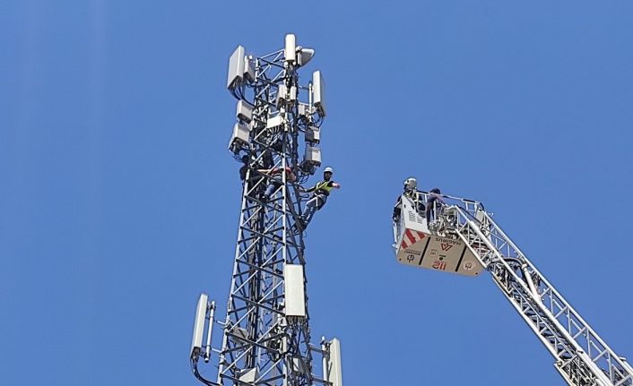 Kısa sürede olay yerine gelen itfaiye ekipleri, merdivenli araç ile baz istasyonu direğine ulaşarak emniyet kemeri ile direğe bağlı olan işçiyi yere indirdi. Kısa süreli baygınlık geçirdiği öğrenilen Ö.A., tedbir amaçlı ambulansa alınarak hastaneye kaldırıldı.