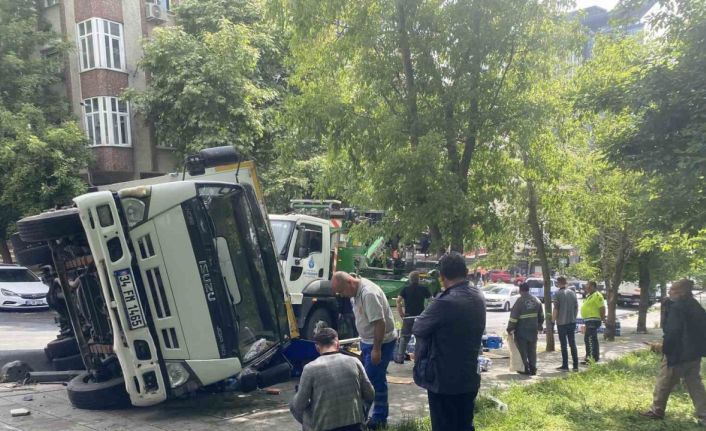 Bayrampaşa’da kamyon devrildi, genç kadın yaralandı: O anlar kamerada