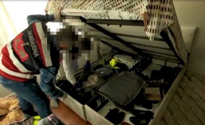 Şüpheli M.B.S.yi etkisiz hale getiren jandarma ekiplerince evde yapılan aramalarda, yatak bazasının altında bulunan valiz içerisine zulalanmış vaziyette yaklaşık 26 kilo eroin ele geçirildi.