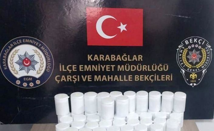 Karabağlar Çarşı ve mahalle bekçileri ilçe genelinde yürüttükleri devriye ve saha çalışmaları sırasında durumundan şüphelendikleri F.K. (25) ve S.Ç. (26) isimli şahısları durdurdu. Şahısların üzerinde ve beraberindeki eşyalarda yapılan aramalarda, 49 kutu içerisinde gizlenmiş toplam 2 bin 710 adet uyuşturucu hap ele geçirildi. Operasyon kapsamında gözaltına alınan F.K. ve S.Ç., gerekli adli işlemlerin tesisi için emniyet birimlerine götürüldü.