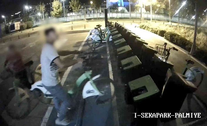 Olay, dün gece saatlerinde İzmit ilçesi Seka Park’ta meydana geldi. Güvenlik kamerasına yansıyan görüntülerde, iki şahsın belediyeye ait bisikletleri çalmak için uzun süre çaba harcadığı görüldü. Park yerinde kilitli olan bisikletleri yerinden söken şahıslar, amaçlarına ulaşınca bölgeden uzaklaştı.