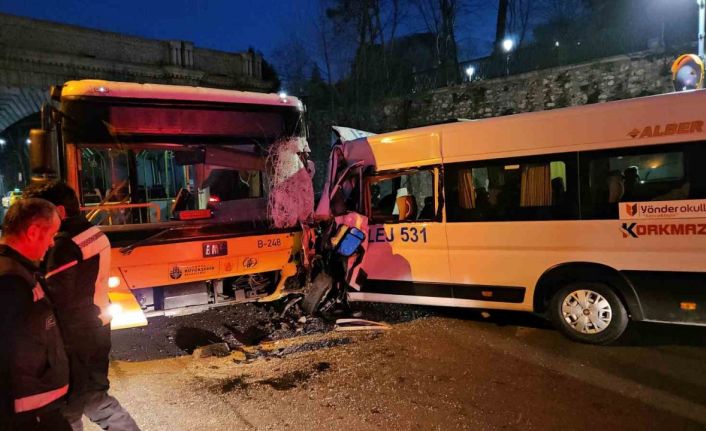 Beşiktaş’ta sola dönerek Çırağan Sarayı’na girmek isteyen servisi minibüsü ile İETT otobüsü kafa kafaya çarpıştı. İki aracın şoförü de yaralanırken cadde trafiğe tamamen kapatıldı.