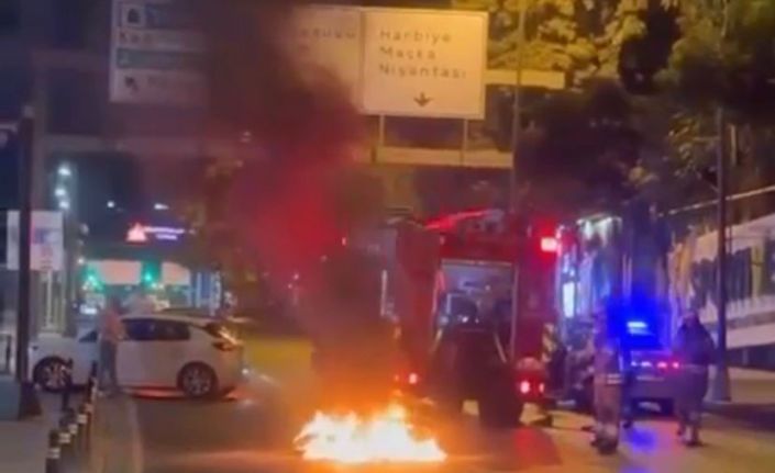 Beşiktaş Kadırgalar Caddesi’nde seyir halindeki motosiklet alevlere teslim oldu. İtfaiye ekiplerinin müdahalesiyle söndürülen motosiklet kullanılamaz hale geldi. O anları vatandaşlar cep telefonu kamerasıyla kaydetti.