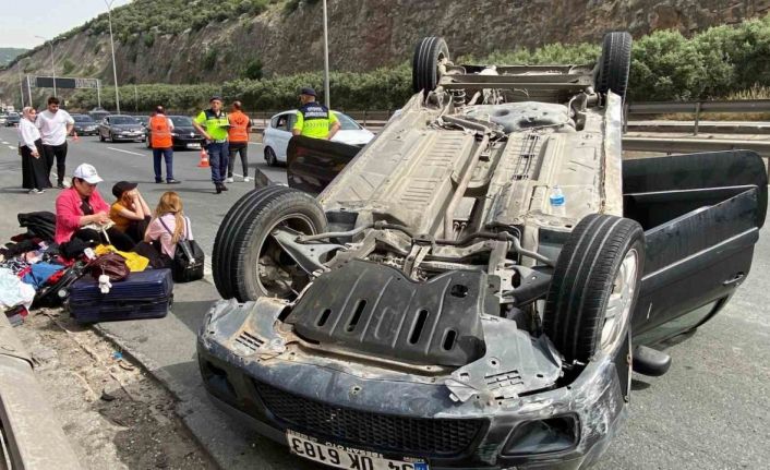 TEM Otoyolu Kocaeli geçişinde kontrolden çıkan hafif ticari araç, bariyerlere çarparak takla attı. Ters duran araçta 3 kişi yaralandı.