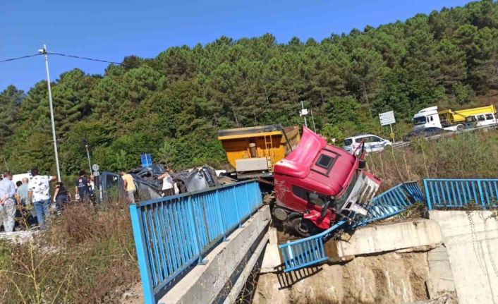 Beykoz’da hafriyat kamyonu ile otomobil çarpıştı. Kaza sonucu otomobil içerisinde sıkışan şahsı vatandaşlar kurtarmaya çalıştı. Hafriyat kamyonunun su kanalına düşmekten ise demir korkuluklar kurtardı.