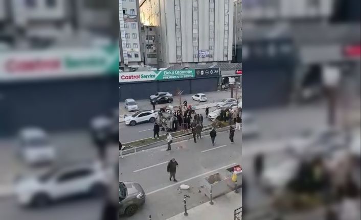 Beylikdüzü’nde direğe çarpan araç takla attı