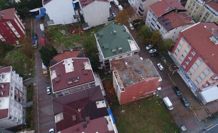 Beylikdüzü Barış Mahallesi’nde saat 13.00 sıralarında fırtınanın etkisiyle 15 katlı bir binanın çatısından koparak uçuşan parçalar, metrelerce uzaklıktaki binanın bazı dairelerinden içeri girmiş. çatıdan uçan kalaslardan biri penceresinden içeri girdiği evin duvarına saplanırken, duvara saplanan kalas diğer dairenin içine geçmişti. Dairelerin içi savaş alanına dönerken, olay sırasında evde olan bazı vatandaşlar ise durumu hafif sıyrıklarla atlatmıştı. Şiddetli lodosun etkisiyle hasar gören çatı ve çatıdan kopan parçaların girdiği pencereler havadan drone ile görüntülendi. Görüntülerde hasarın boyutu ortaya çıktı. 15 katlı binanın çatının lodosun etkisiyle dağıldığı biraz ilerdeki apartmanda bulunan dairenin pencerelerin de kırıldığı görüntülere yansıdı.
