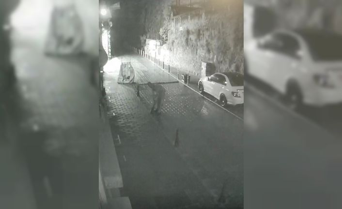 Beyoğlu’nda kağıt toplayıcılığı yapan bir kişi, kaldırımlarda araçların park etmemesi için yer alan lobutları çaldı. Sokağa gelerek lobutları tek tek söken şahıs, ardından el arabasına yükleyerek olay yerinden uzaklaştı. O anlar sokaktaki güvenlik kamerası tarafından kaydedildi.