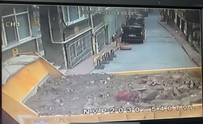 Beyoğlu’nda yağmur sebebi ile kayganlaşan dik yokuşta fren yaptığı halde kayan toprak yüklü kamyonet, eve çarptı. Evdeki anne ve bebeği büyük korku yaşarken, kaza anı da kameralara yansıdı.