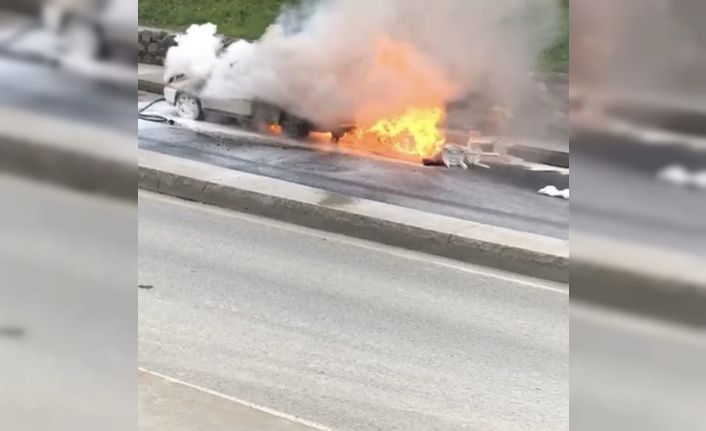 Yangını gören Berat Uzan, “Dükkandayken dumanları gördük. Sonra yangın tüpüyle ilk müdahaleyi yaptık. Araç LPG’li olduğu için alevler hızla çoğalmaya başladı. Sonra belediye otobüsünün şoförü aracın bagajını açarak LPG tankını boşalttı. Aslında olası bir faciayı belediye şoförü engelledi. Boşalttı patlama olmadı, yangın sadece otomobili yaktı. LPG tankını boşaltmasa patlardı. Diğer araçlara sıçrardı, faciadan dönüldü” dedi.