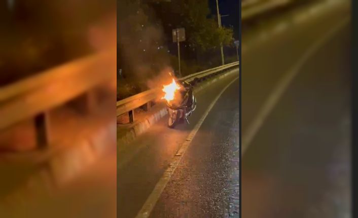 Yangın sonrası motosiklet kullanılamaz hale gelirken o anları ise kurye cep telefonu ile kaydetti.