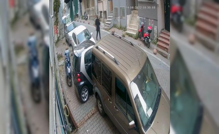 Cihangir’de bir şahıs sokak arasında park halinde bulunan bir motosikleti çaldı. Motosikleti çalınan vatandaş, aracının kaskının bir internet sitesinde satışa çıkarıldığını görünce polis ekiplerine haber verdi. Harekete geçen Beyoğlu Asayiş Büro Amirliği polisleri, çaldığı motosikletteki kaskı internetten satışa sunan hırsızı satış bulaşmasında yakaladı. Hırsızlık anı ise kameralara yansıdı.