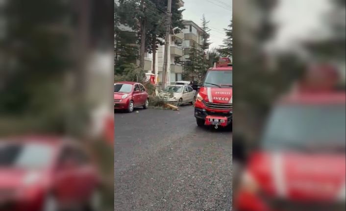 Ankara’nın Beypazarı ilçesinde fırtına sebebiyle bir ağaç otomobilin üzerine devrildi.